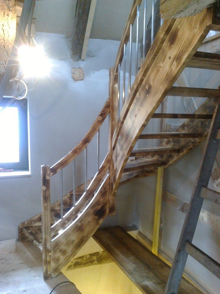 Auch im Innenbereich bekommen Sie bei uns alles aus einer Hand, ganz gleich, ob Fußboden, Decke oder Wand. Wir planen und bauen Holztreppen für Sie, gerade oder gewendelt, auch in Kombination mit anderen Materialien.